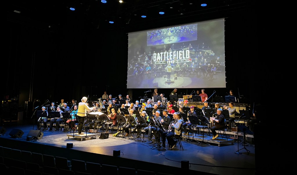 Nedan en bild från vår tv-spelskonsert på Sara kulturhus i höstas, då även ungdomsorkester Skellefteå symphonic band deltog.